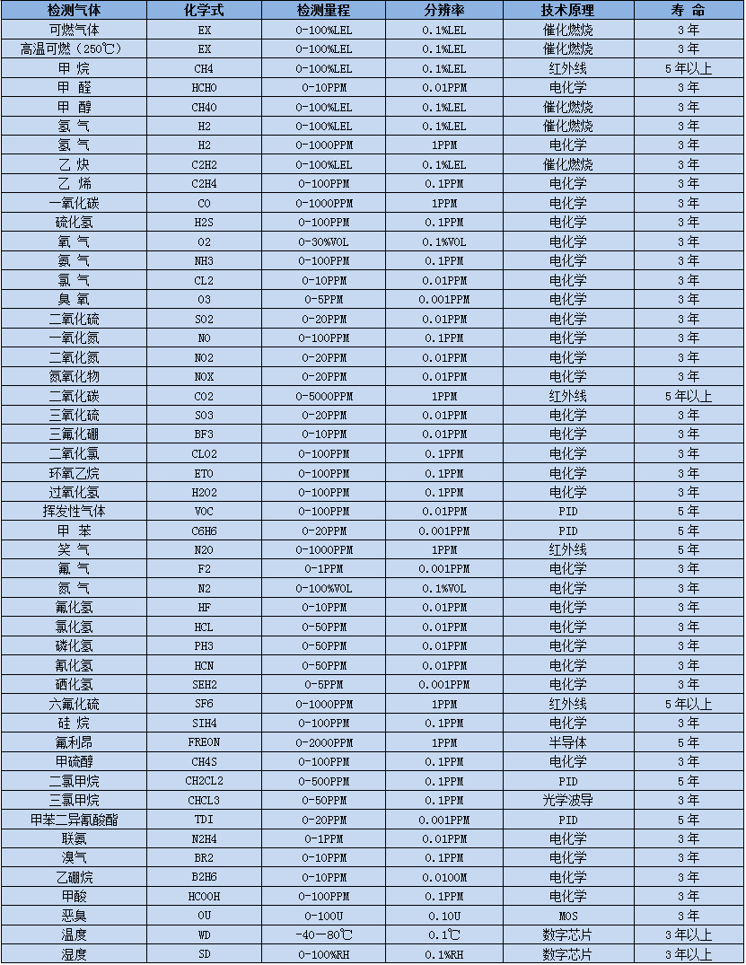 ※另有1000種氣體和量程可選,詳細(xì)請咨詢深國安銷售人員!