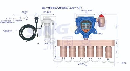 深國安出產SGA-506系列一體泵吸式六合一氨氣檢測儀,默認帶防爆泵,產品支持1-6種氣體任意組合,可自由選配單一、二合一、三合一、四合一、五合一、六合一檢測儀器等探頭...