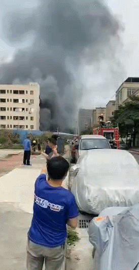 廣東東莞一廠房發生火災事故,現場黑煙漫天